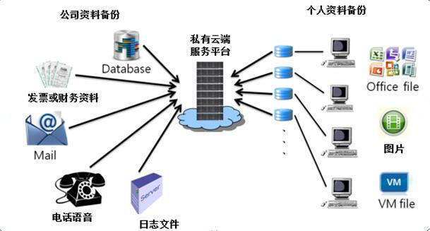 云端儲(chǔ)存服務(wù)平臺(tái)非常適合公司信息中心在內(nèi)部提供相關(guān)儲(chǔ)存服務(wù),架設(shè)此私云端儲(chǔ)存服務(wù)平臺(tái),可以讓公司常用的信息服務(wù)產(chǎn)品進(jìn)行備份,例如Email備份、DataBase備份、電話通聯(lián)紀(jì)錄或是公司服務(wù)器相關(guān)log或Event紀(jì)錄備份,透過(guò)第三方軟件即可將所有信息集中至本云端服務(wù)平臺(tái),亦可透過(guò)各種分析軟件進(jìn)行數(shù)據(jù)行為與分析,提供公司高層主管參考。